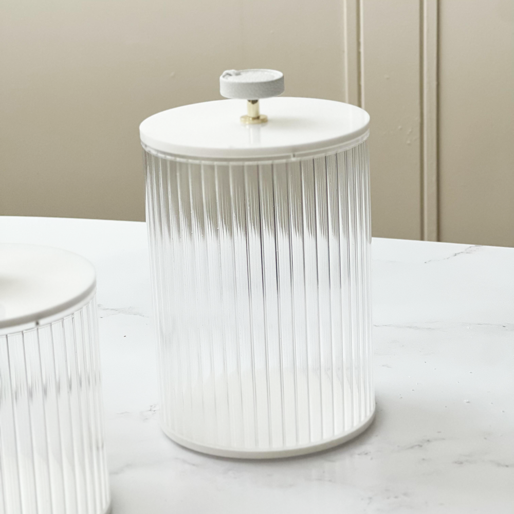 Corrugated Lucite Cookie Jar with Leatherette Handle