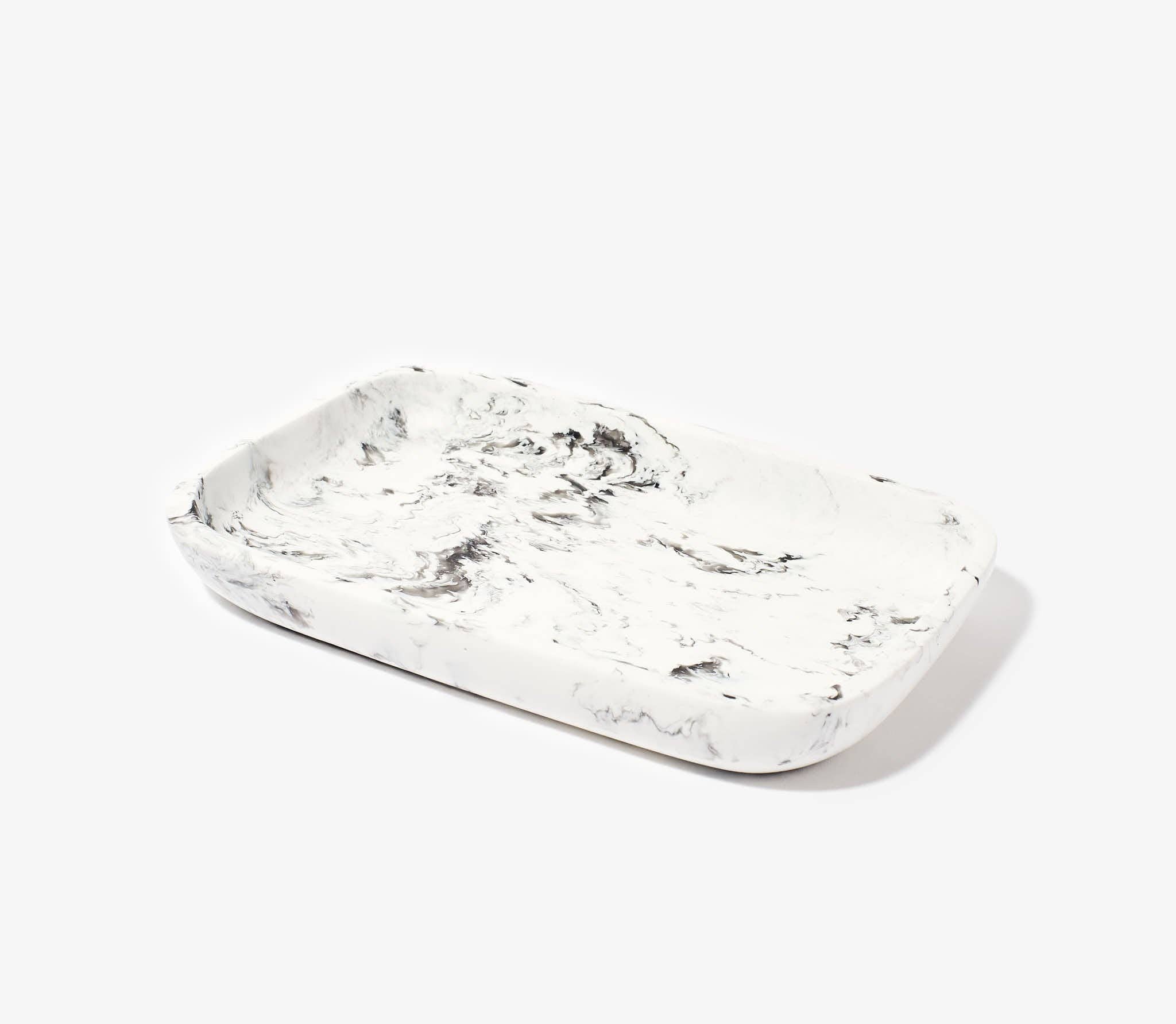 Masterfully handswirled and handmade, this large resin rectangular nesting tray is as at home dressing up your appetizers as it is on your dresser. Use it as a catchall, to serve apps, or to display your jewelry. We love nesting it with its smaller counterpart for maximum drama. Available in 4 hypnotic hues—Luna, Sand, Onyx, and Ocean.