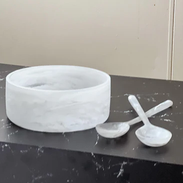 Buy NowThese elegantly designed salad servers are crafted from durable resin, featuring a stunning white swirl pattern that enhances any table setting. Ideal for serving cold or low-temperature dishes, it offers both style and functionality. Please note that it is not suitable for hot foods.