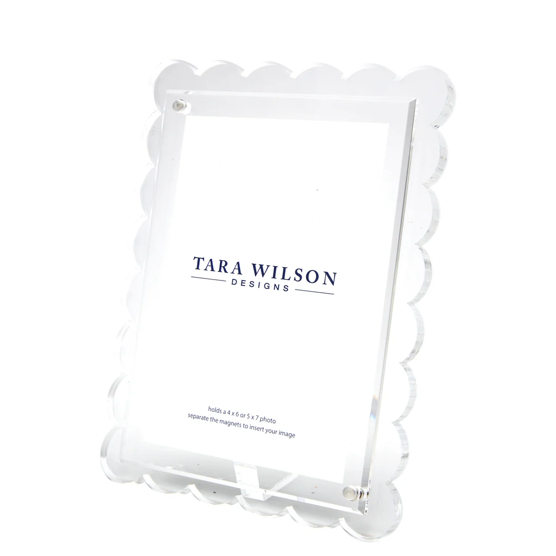 Details: Clear lucite, built in magnets for easy assembly, kickstand orients the frame vertically or horizontally.